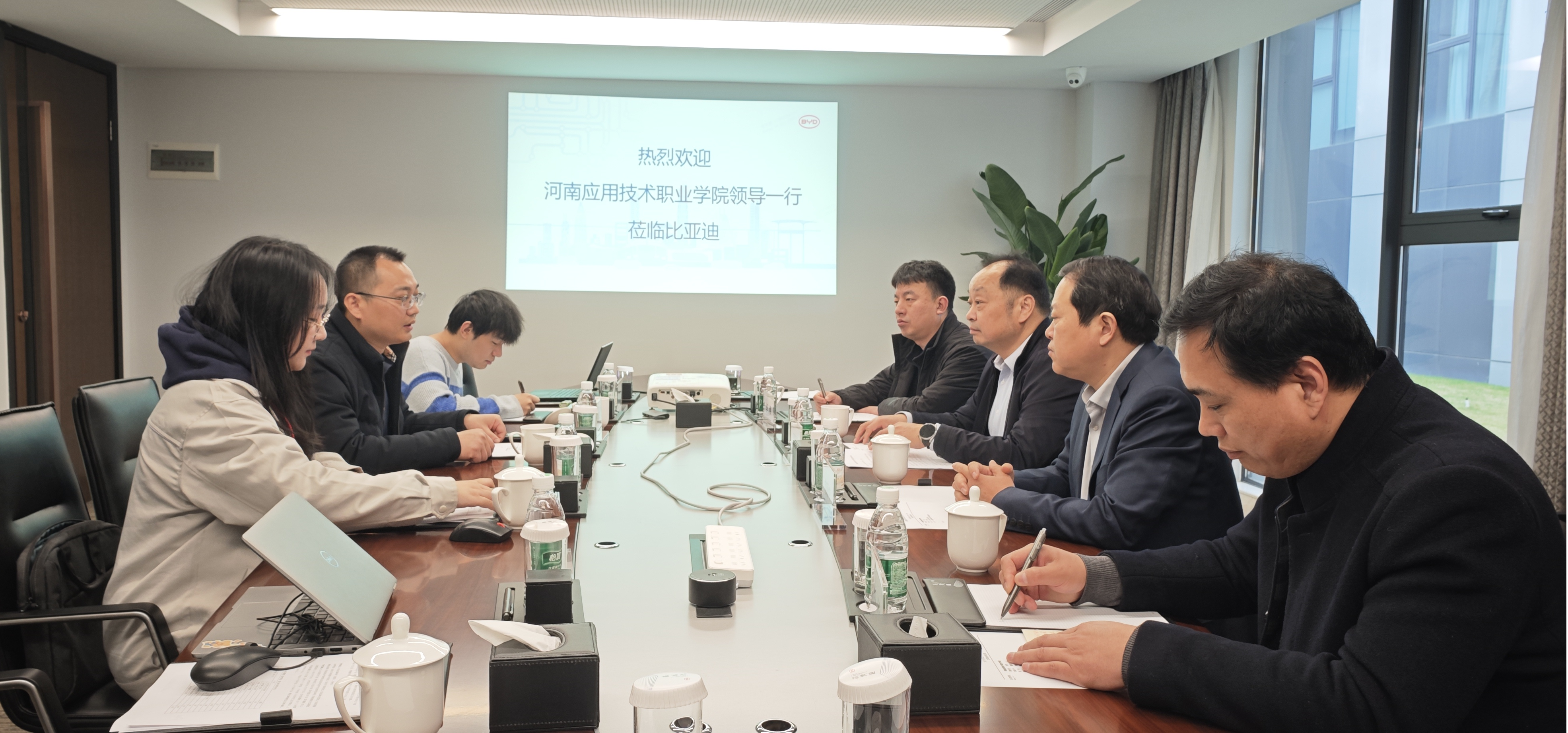 3月7日,校长薄新党,副校长常新中,院长办公室及Beat365中文官方网站负责人一行4人赴深圳比亚迪股份有限公司调研交流。比亚迪股份有限公司人力资源处校企合作经理杨双喜及相关业务负责人热情接待并出席座谈会。