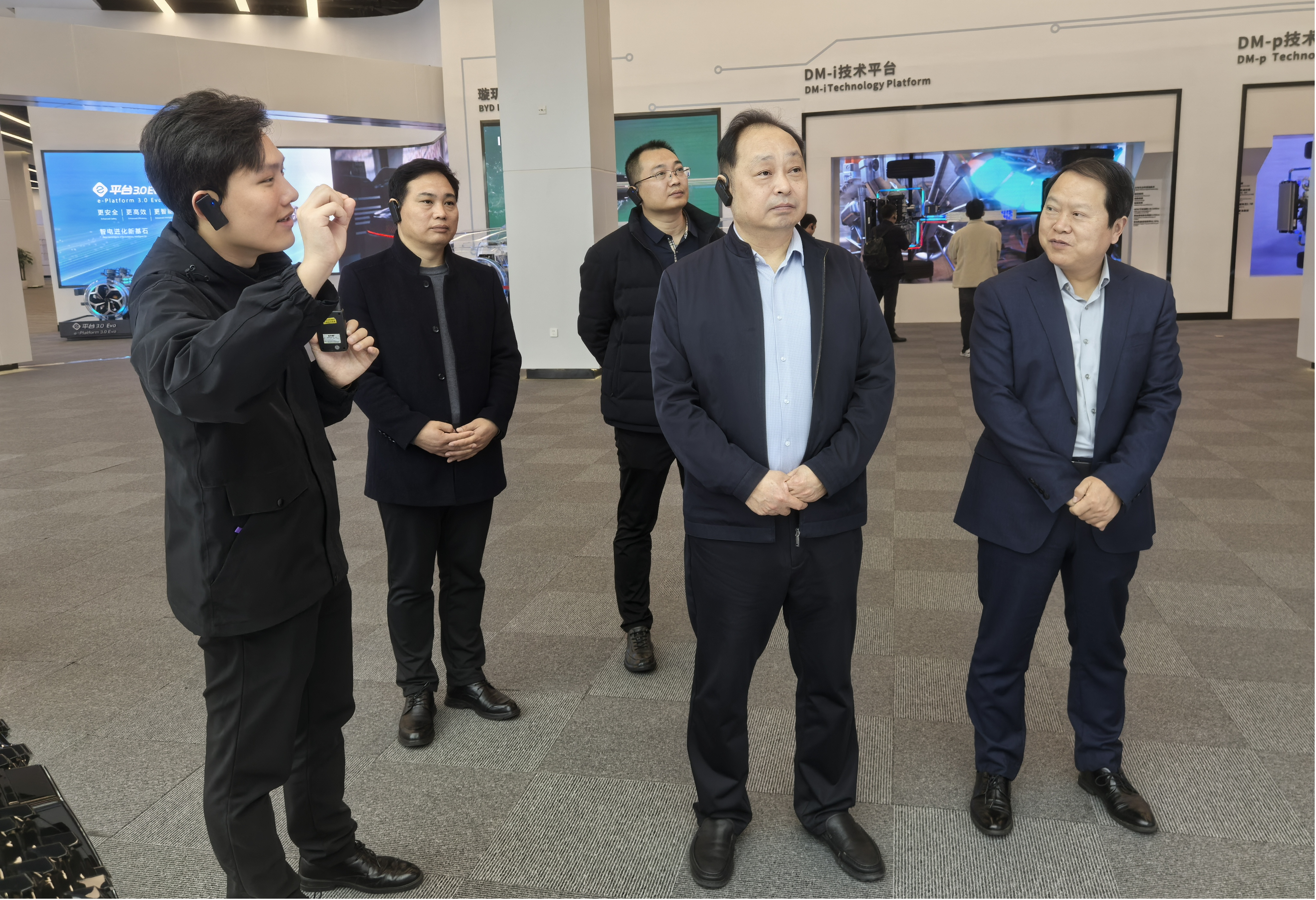会后,在企业相关负责人的陪同下,薄新党一行参观了比亚迪产品展厅,详细了解了比亚迪在新能源汽车、储能系统、轨道交通等领域的研发成果和生产工艺。